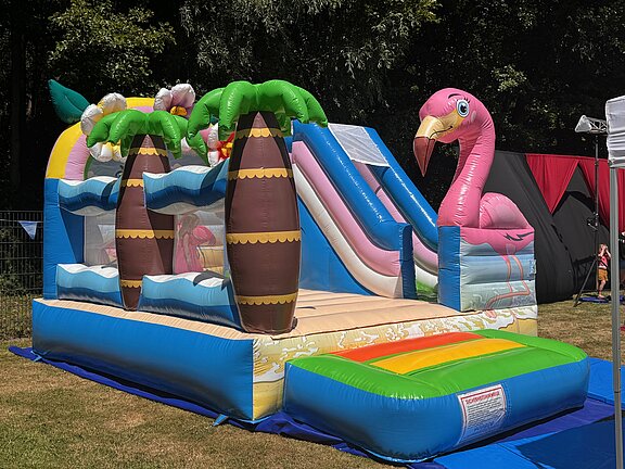 Stiftung Buntes Herz übergibt mit Hilfe von drei Spendern mit Herz Hüpfburg „Strandparty“