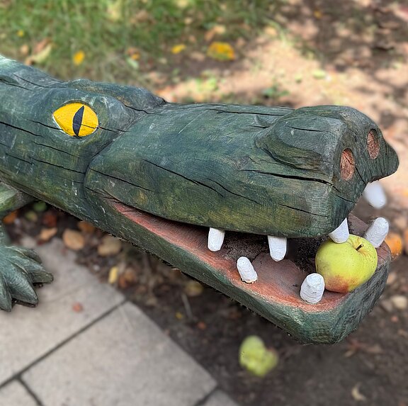 Stiftung Buntes Herz schenkt ein liebevoll hanfgefertigtes Balancier-Krokodil – ermöglicht durch Unternehmen aus dem Großraum Bonn
