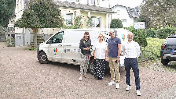 Das Rad, hergestellt von der holländischen Firma Van Raam und geliefert durch e-mobil, überzeugt durch seine praktische Auffahrrampe und die elektrische Tretunterstützung. Damit sind auch längere Touren ein Kinderspiel – bis zu 60 Kilometer kann der Akku halten! Kein Wunder, dass sich Silvia Stelgens und Helmut Graf von der Stiftung Buntes Herz bei der Übergabe besonders freuten: „Ein weiteres Herzensprojekt, das einen glücklichen Abschluss gefunden hat“, so Helmut Graf.